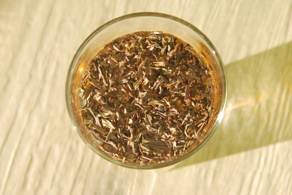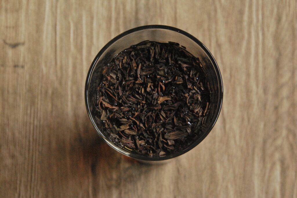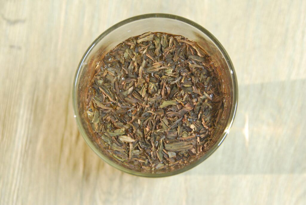 Dieser Tee hat interessanterweise viel weniger geschäumt, als ich es von anderen Sorten gewöhnt bin, aber dennoch habe ich nach fast 100 Stunden beschlossen, dass es nun an der Zeit sei die Blätter heraus zu fischen. Süß riechen tut die Tasse inzwischen auf jeden Fall und das ganz ohne Süßungsmittel.